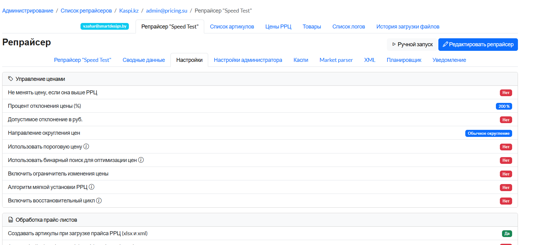Не у всех продавцов есть доступ к API Kaspi. Мы это предусмотрели. Вы можете настроить автоматическую генерацию и загрузку YML-фидов — система сама будет отправлять актуальные цены на площадку.